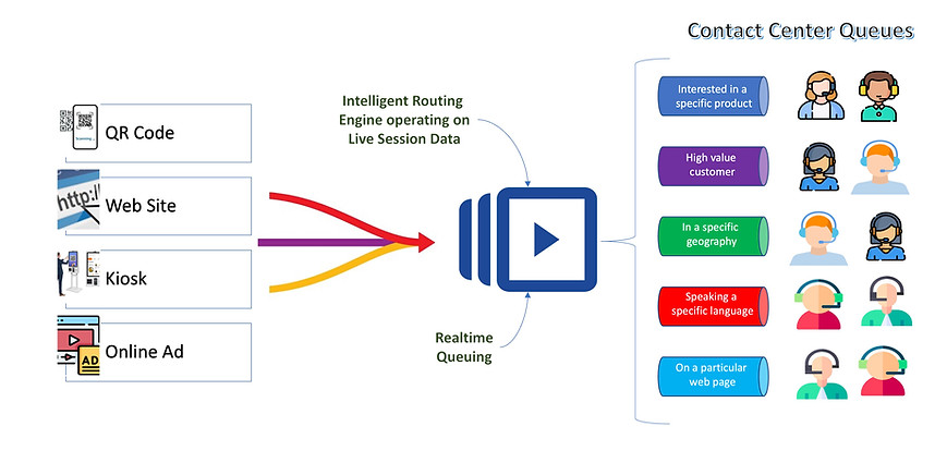Inbound calls can be routed and queued dynamically using data right from the customers live session. This means questions get to the right people in your organization faster than ever before.